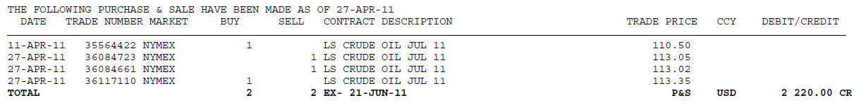 | Entry | 4/11/2011 | 111.925 |