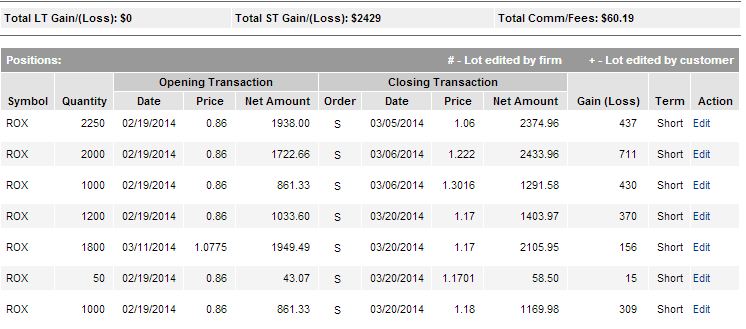 | Exit | 3/5/2014 | 1.30 |