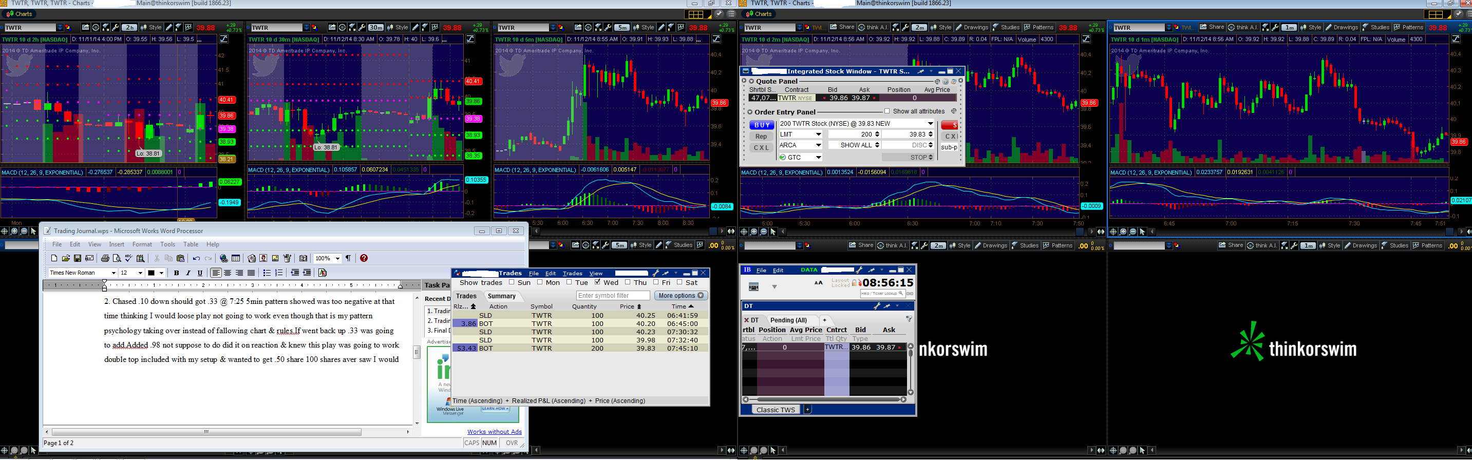 Chased .10 down should got .33 @ 7:25 5min pattern showed was too negative at that time thinking I would loose play not going to work even though that is my pattern psychology taking over instead of fallowing chart & rules.If went back up .33 was going to add.Added .98 not suppose to do did it on reaction & knew this play was going to work double top included with my setup & wanted to get .50 share 100 shares aver saw I would get that if take +.50 of where I should got in.