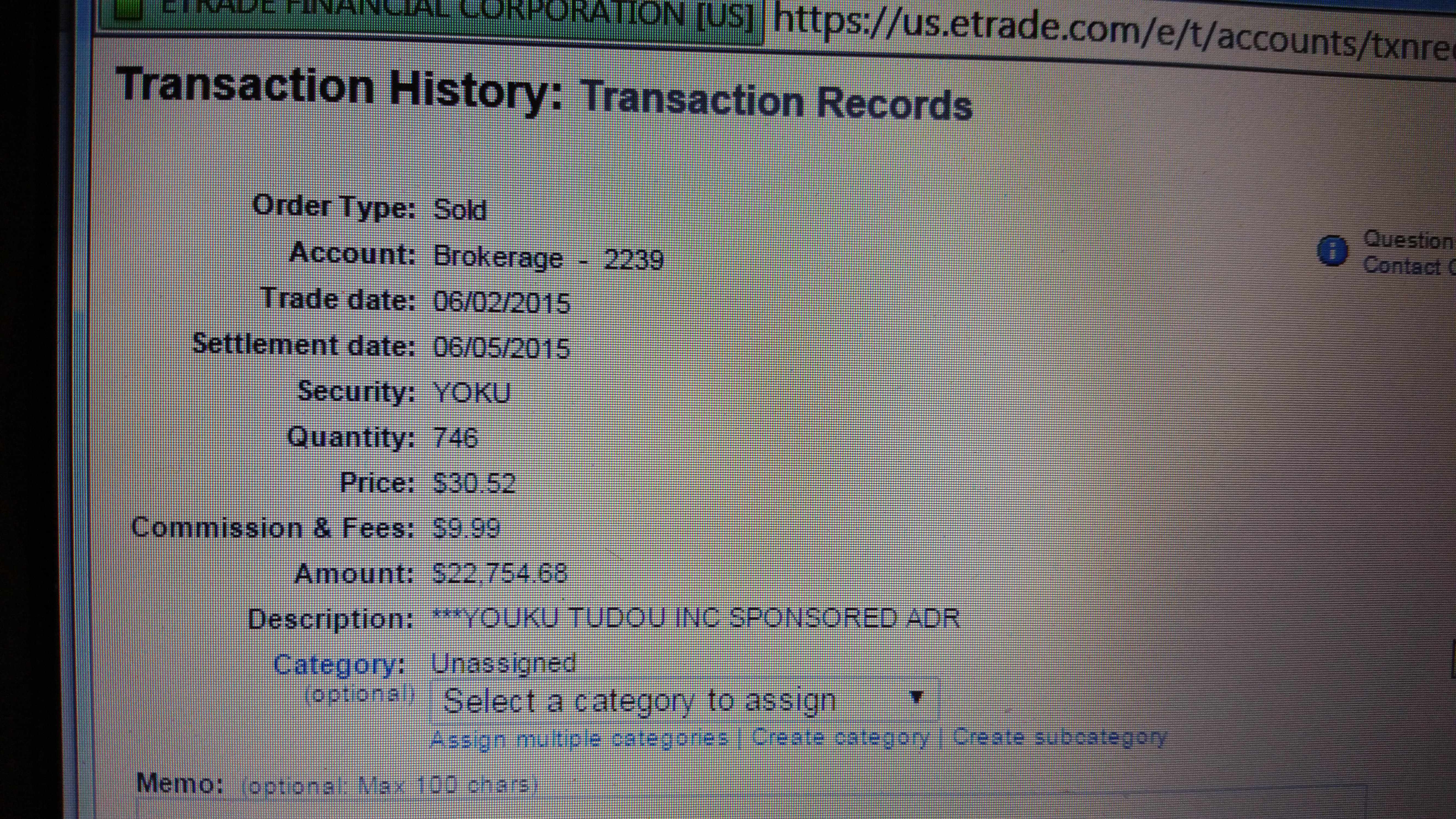 In May I made over $11 K. So, I decided not to over trade and wait for the set up and be PATIENT! This month I started with a nice 10% profit as shown here. YOKU has been going down for the past 3 days so I bought at the closing on 6/1/15 and sold on the spike the next morning on 6/2/15. My plan was to get out with $1+ profit. News on a partnership with DIS moved this stock fast and nicely giving me almost $3/share profit. I'm just following the gurus' rules! (Tim S and Tim G)