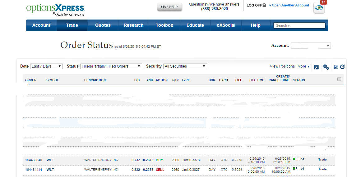 Bad trade. I'm over trading. I saw the chart pattern and did not do any homework before buying this crap stock. Missing interest payments, etc. Junk company. Waited for a bounce to complete the cup and handle pattern, but nothing but a drop this morning with a small gap down. Next week I have to work on discipline and not over trading issues.