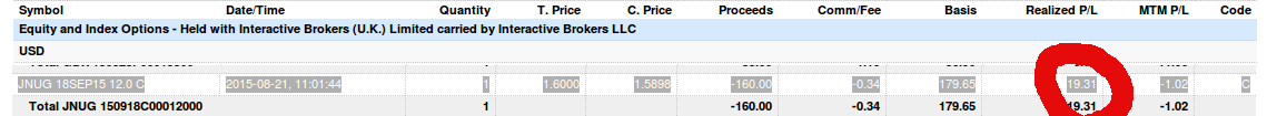 Entry comments: Well since JDST is crashing lately and JNUG is going up in very short time. It is the moment to sell a little call in JNUG. See my watchlist