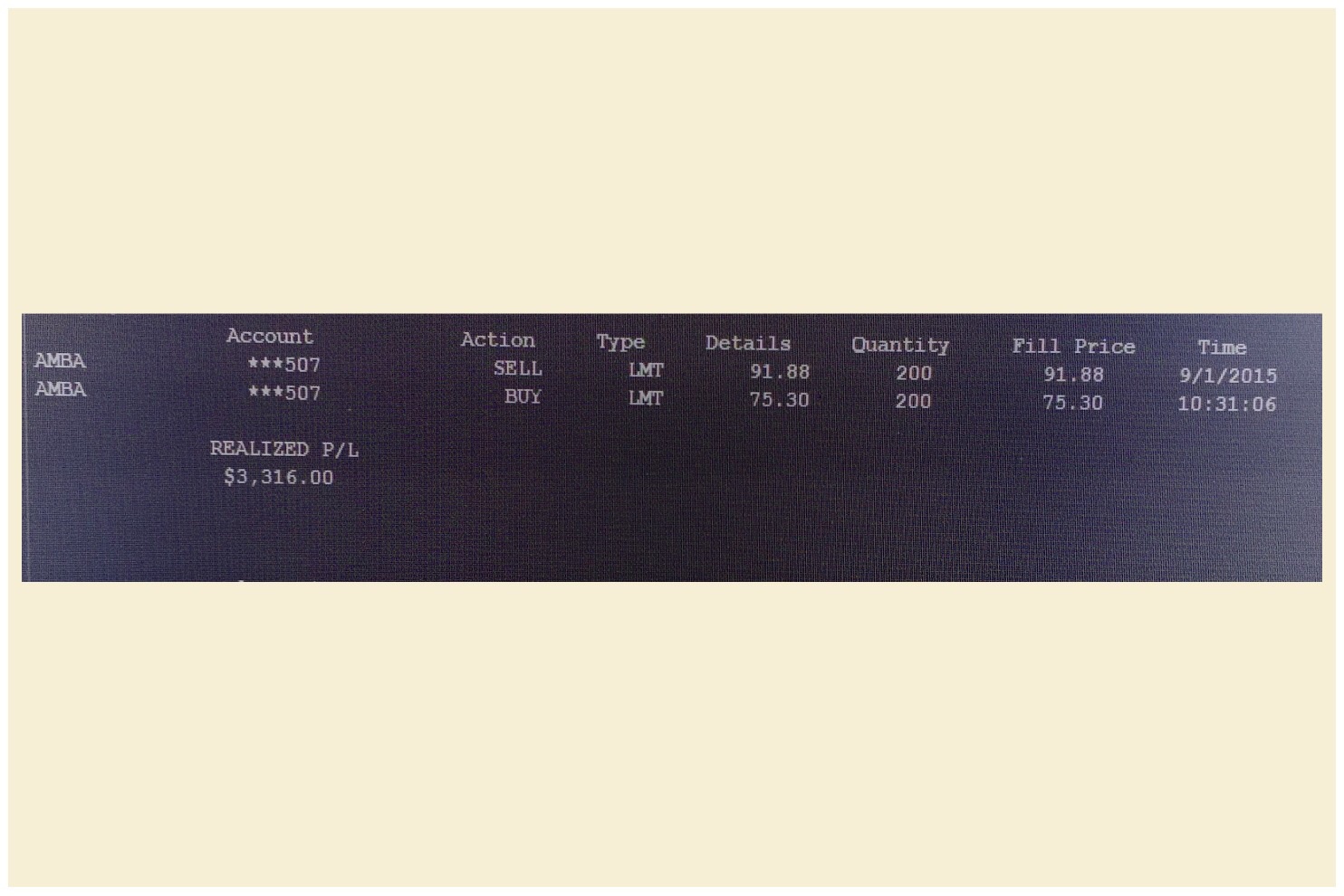 your purchase shows 10:31:06 under time, your sell shows 9/1/2015, neither shows the 9/2/2015 that you post....I call BS
