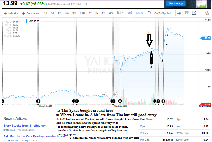 Entry comments: A little nervous about this one. Higher price stocks means I technically need a greater jump to make up the high commission fee's do to lower amount of shares purchased. Still, its not a bad buy a few cents late to the part. Lets see what this will do tomorrow. Aiming for 13.95 range before its next major ceiling. Safety net at 13.27 if it goes south. Plan to exit into morning spike. Hopefully it holds a/h.