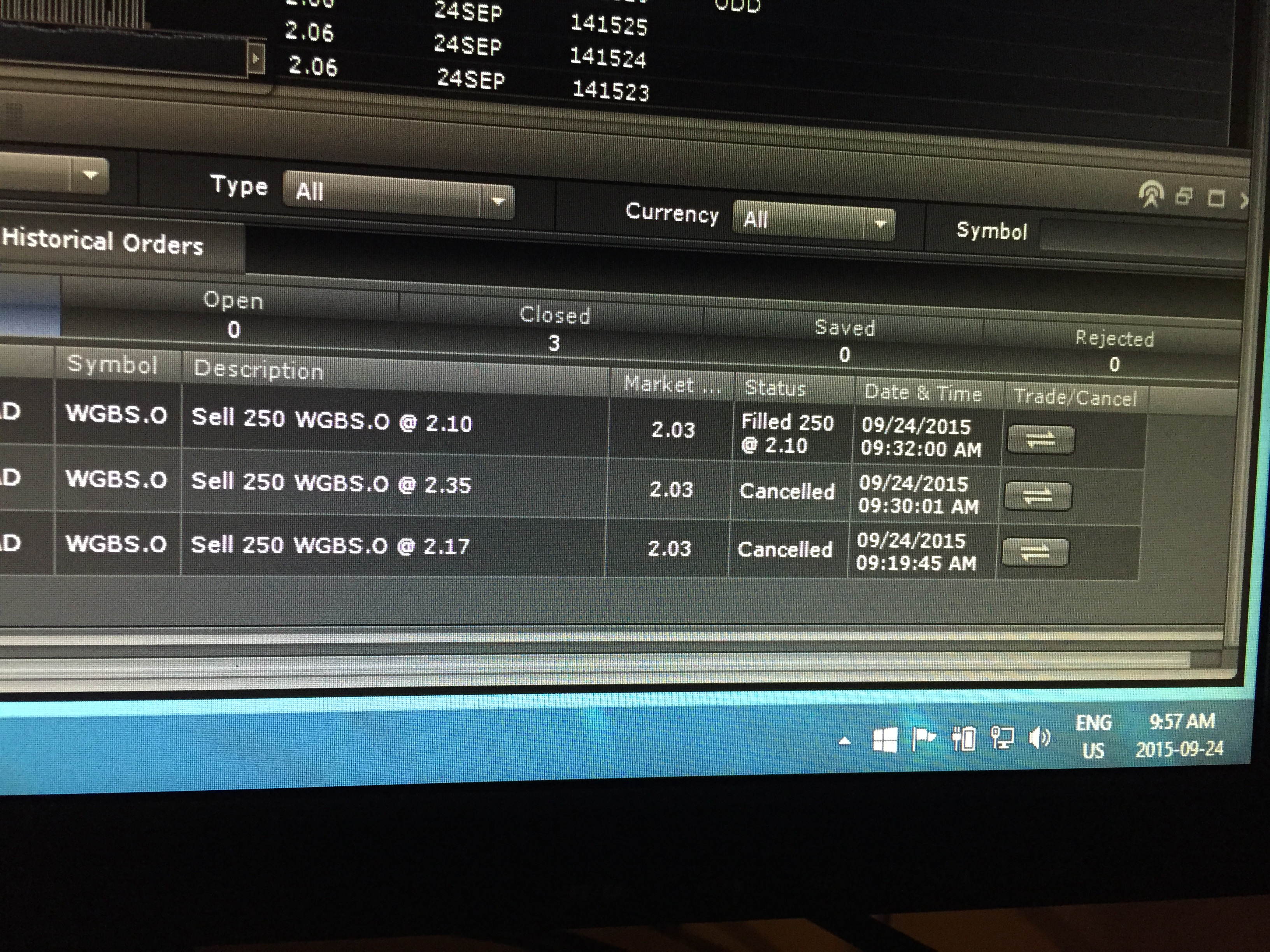 Still have to trade to keep commissions low. Bought this afternoon fakeout. Held overnight. LESSON: Don't hold overnight if you don't know what you're doing. Stock closed @2.22 and afterhours dropped as low as $1.83!!!! Glad I was able to cut losses @2.10. No overnights for me until I choose to learn the setup.