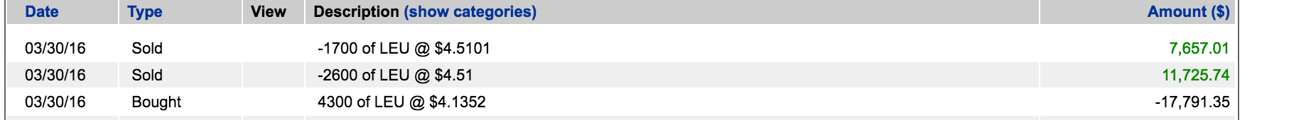 Nice profit on LEU, decided to buy on its dip from 4.2 around 2 pm
