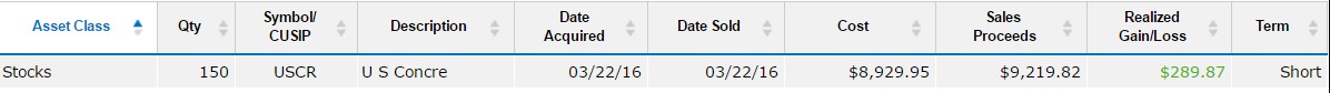 | Exit | 3/23/2016 | 61.50 |