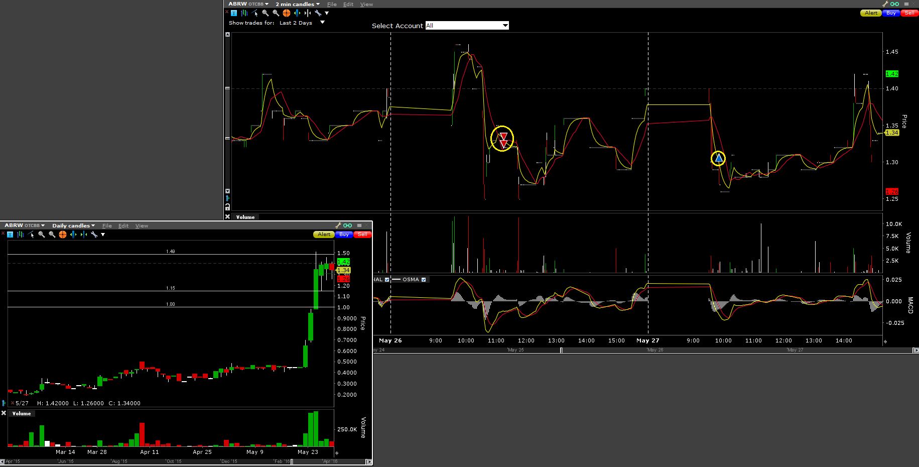 Shorted this OTC pump because it had a topping price-action and it was a first red day. Beside that IB most of the time did not have any shares avaliable to short and when all of a sudden some shares became avaliable i immediately grab the opportunity. I was actually expecting a panic on that day but i didn`t get any so i held my shares overnight. I have covered for punny profit the next day into a small morning panic because stock held higher low once again.