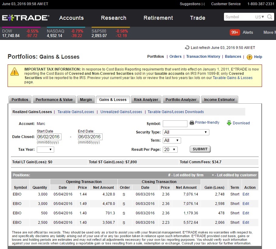 Thanks so much guys I really appreciate all the comments. I bought on rumor of a buy out. Here's my tweet on this stock and the reasons why I held so long. "EBIO Yahoo Finance says, Eleven Biotherapeutics is 12.73% insider held, 73.6% Institution held w/ 11.24% of the 6.53M float sold short " You can't do with just any stock but the truly low floats have always been good to me and I have different views for holding them.