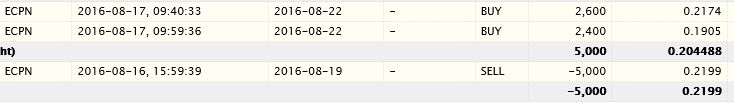 Entry comments: This OTC stock is up from 3 cents to 28 cents and haven't had red day in 15 days. Today it made 52w high but couldn't hold it gains. Near the close I wanted to jump in when I saw it would finnish red, but couldn't get a good fill so at the end I had to smack the bid, but I took much smaller position then I wanted. The odds are tomorrow we'll see gap down.