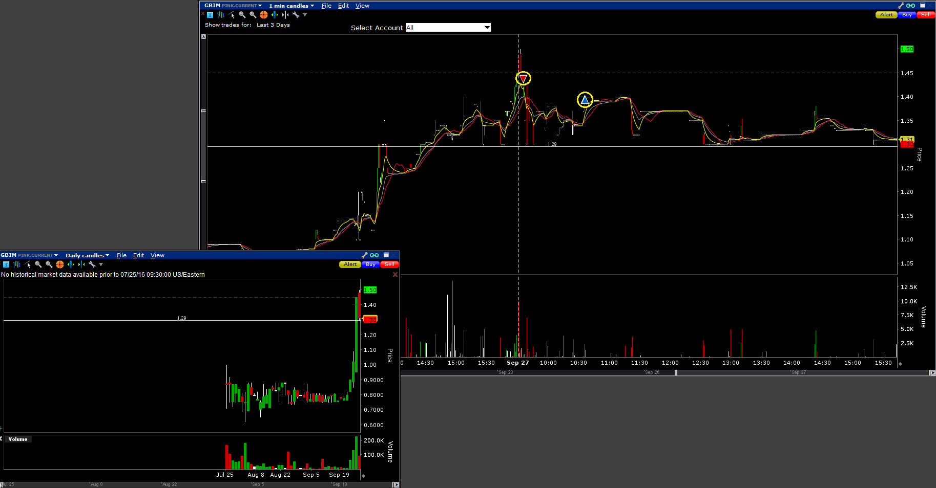 Shorted into a failed morning spike and stock went red on the day. I was expecting a morning panic. Unfortunatelly they have saved it and stock has made a double bottom @ $1.30 so i coverd for a punny profit. I should have stuck to my original (stop/loss) which was that i am going to held my short as long as it will stay red on the day. I that case i would held my small short through all day and overnight and i would be covering my shares the next day into another small morning panic.
