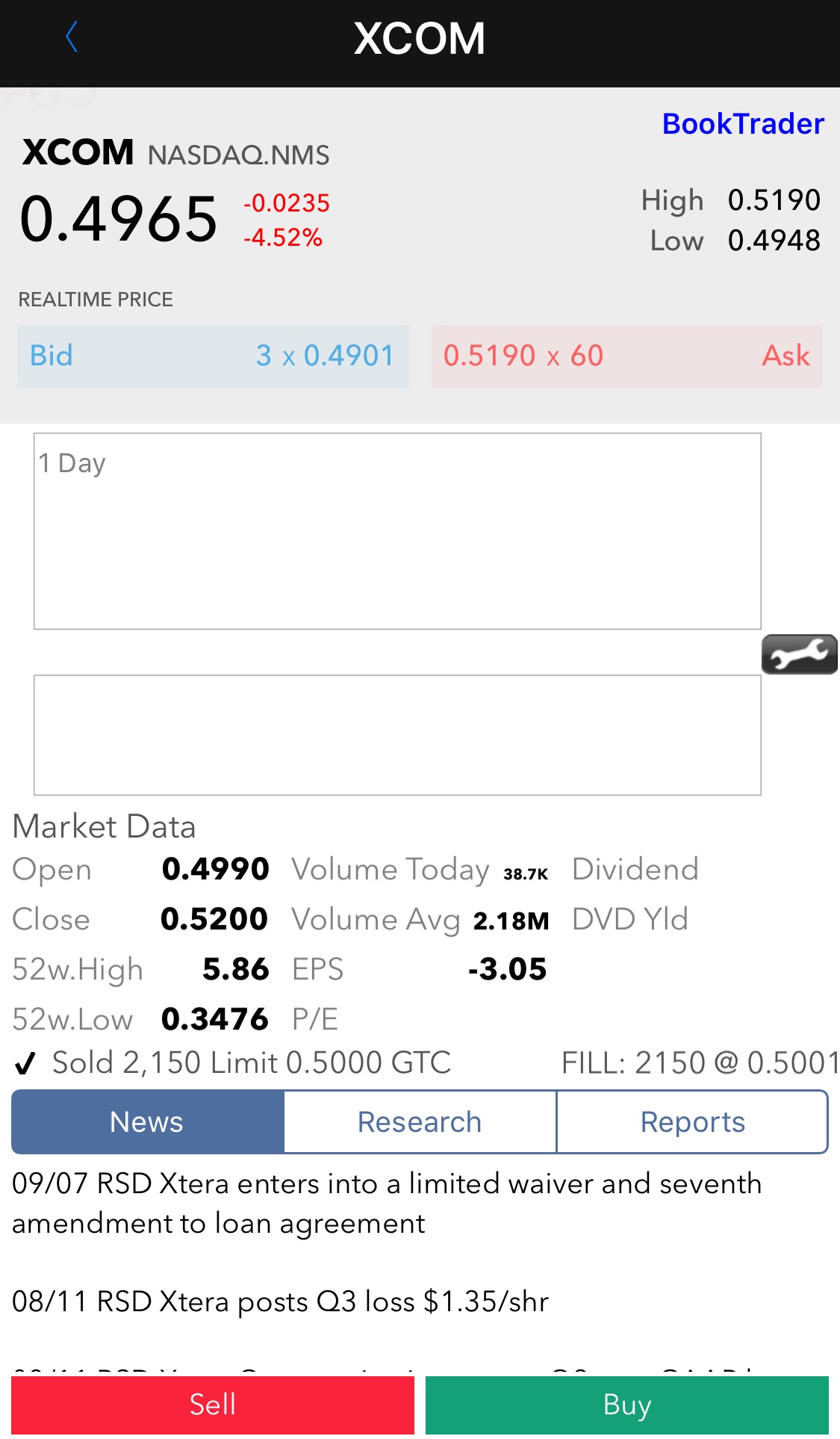 was thinking of dip buying this stock as it was spiking early. i placed the order at .53 not thinking to get executed and then a big drop occurred. so i stayed in o/n to sell into morning spike on monday. i couldnt wait and was out for a small loss in the first 2 mins of trading. then i got the spike i was looking for. bleh