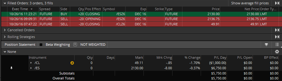 Man, I blew it on this one. I got wrapped up in some other things this morning and completely forgot about this trade. When I remember it I saw it go from positive to negative after the oil report at 7:20 AM this morning. I believe it was up a few thousand before i caught it. Expensive lesson learned.