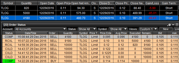 The reason I bought this stock midday when volume was really low and nothing was moving much is I wanted to see if I could help the price to move up by buying a large amount 10,000 shares (more then avg) and maybe others would see the price go up and buy to get in, price went up but not enough to convince anyone to buy, later sold it, partial fill, price dropped, had to change price to sell the rest, couldnt get executed. finally selling at .095, gettng out, avoiding a much larger loss.