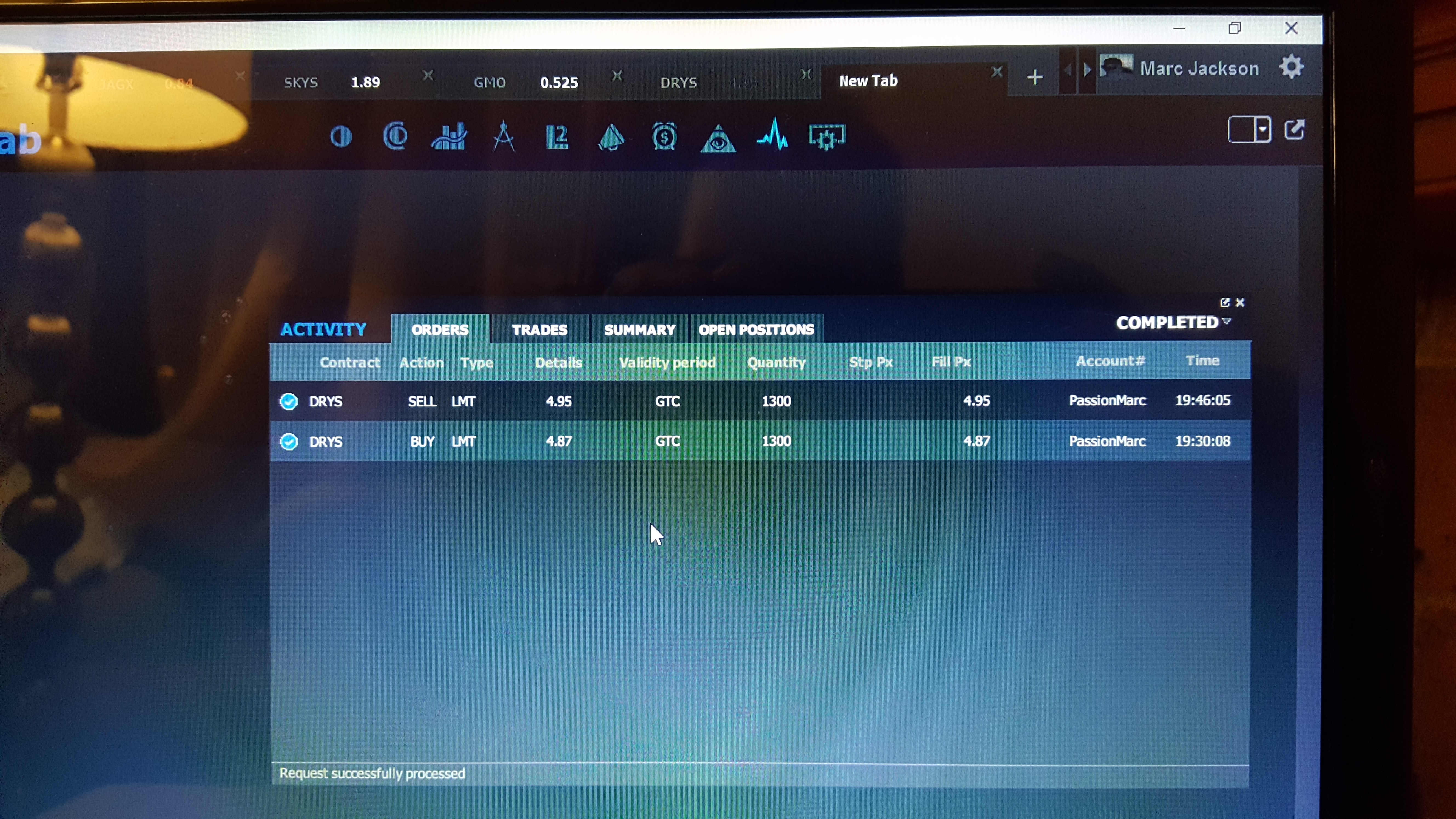 This is my first paper trade. I am now a part of the StocksToTrade family. I used this to find DRYS. I had my news scan on and this came up on the radar and the Twitter feed had some positive feedback. I read the article from the Twitter feed and it said that DRYS will be announcing Earnings on Feb.7th. I then looked at the chart and saw that the chart and the Level II was moving after hours. It had great support on the bid and the ask was being taken out. I bought in and made $104 in 15 minutes