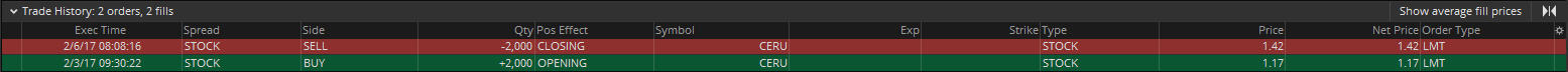 WOW!!!! Never saw I've been executed a 1.17 on Friday a 9h30...could have sold at 1.50-60$ish a couple minute later...open my account in morning...saw the share...and decide to solf to lock a 500$ profit. Biggest profit so far. I'm happy because I had a good setting friday but mad because thought I had miss it. But feel very lucky because it did'nt crash during the day or PM monday. Very Very grateful!!! OMG!!!!