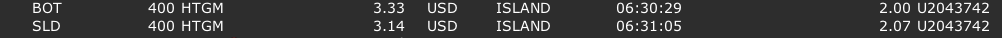 This was up after hours and into the morning. Watched for the fading just before open but what actually happened was that it tested 3.25 several times indicating a drop at the open. Didn't realize that. Anyhow it dropped right away and I had 30 sec to get out. Cut losses quickly. Obviously I didn't realize what would happen shortly after with this stock but I didn't have the guts to get in. I did have my risk level of 3.25 but it was a bearish signal that I didn't know. Lesson learned.