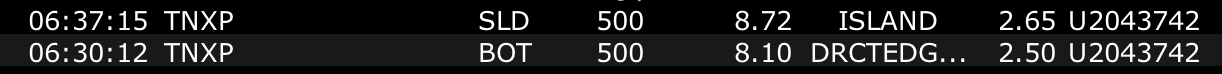Alerted in the chat room. Did some quick research and saw it was a low floater with good news today. Stock was up pre-market and opened strong. I waited a few seconds to see if it would drop and it started spiking. Was filled shortly after 8 and watch it ride to above 9. Was watching for consolidation in this area but the price action was showing resistance at 9. Exited when the candles were giving off negative signals. Shortly after the stock dropped. Executed very well.