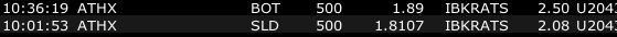 ATHX - Alerted in the chat room. It looked like a possible double top and I piggy backed another trader on the thought it would drop through the 1.80 level. Shorted at 1.81 and kept risk at 1.9. The trend changed and the stock moved up through the previous resistance where I exited. Stuck to the rules and cut losses at my risk level.