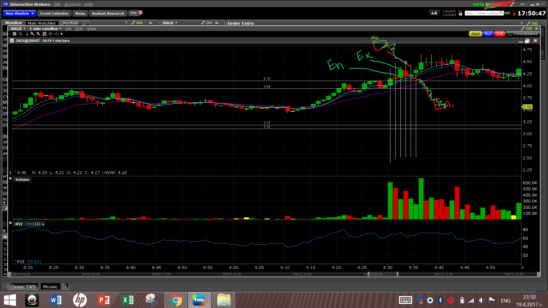 Well, pretty much classic low float at the open. It opened strong, but a bit hesitant, the market opened and it kindy stopped, and suddenly it broke the premarket high of 4.10 and hit 4.25 in a sec, then came back and pretty much did the same thing for 3-4 times, making higher lows and catching higher bids. It also had a few weird "drops"" on the chart. Once the volume really kicked in and it was obvious its gonna go, I got in on a dip and sold almost immediately -again VERY EARLY ! VERY EARLY !