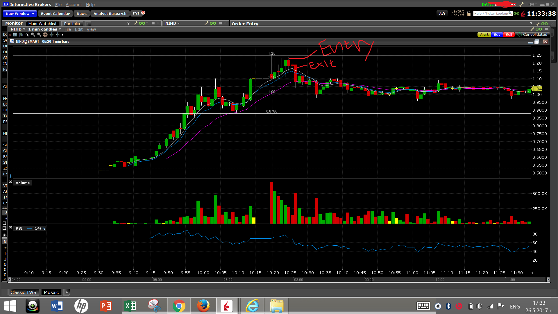 Extremely stupid and amateur trade-Dennis was with me, but that does not excuse it. I was observing the stock going from 0.80 to fucking 1.25 and didn't pull the trigger a couple of times-around 1.00 mainly. So, influenced by my previous winning trade, Just make the classical mistake I always make-buy the top IN ANTICIPATION OF THE BRAKE!Instead of buying on the dip at 1.10 multiple times. Clean emoitons and hope, nothing else. At least, At least I realized it and cut losses immediately.stupid!