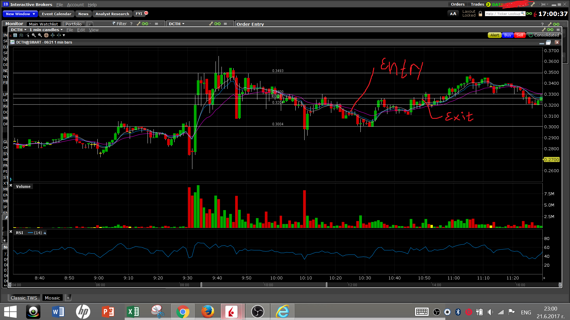 A good trade, even though a loss. I was clearly on the right path, just off with the timing. A lot of bid propping,pretty good entry and when it failed to brake 0.30, volume kicked in and it reversed trend. Didn't hesitate to cut losses as planned, small loss, happy with it. The trade was going my way, but there seemed to be some kind of manipulation, as it did fade away in the afternoon and I managed to catch it on the next trade. One difference with the next: the markets weren't red on the day
