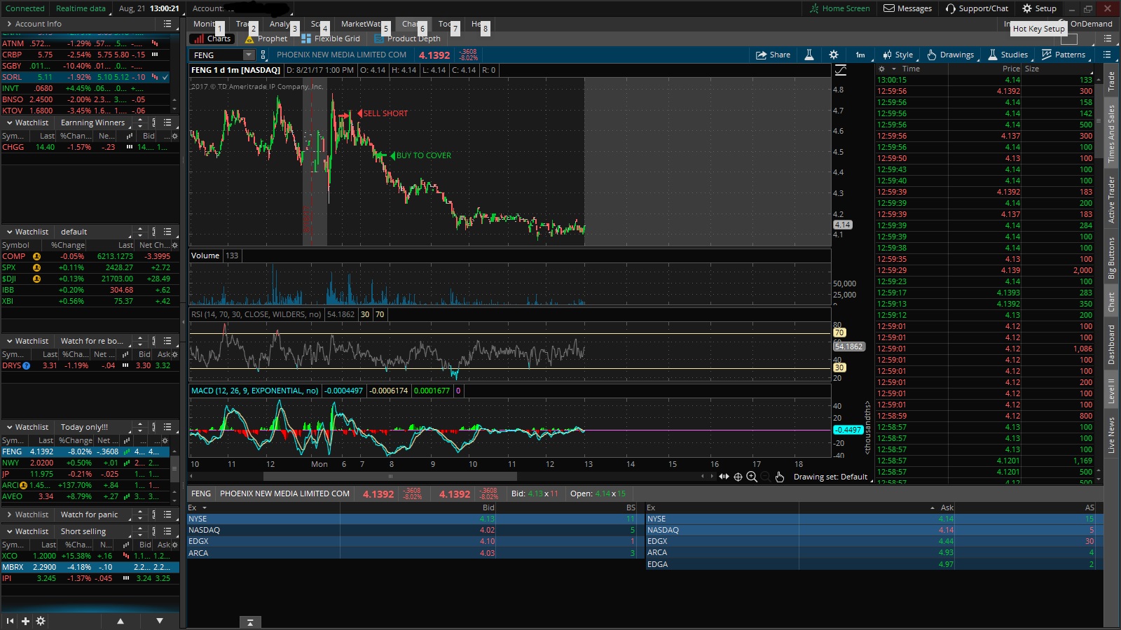 I shorted this earnings winner just because its over-extended. I already know that its a earnings winner its risky to short but all I wanted was just a small pull back. My goal was to cover @4.45 but because its a earnings winner like I said, there are possibility that it could squeeze the short sellers. I didn't want to be too greedy so I locked into my profits @4.48 just a few cents higher than my goal. By the end of the day the stocks faded all the way too @4.15 and I covered it way too fast.