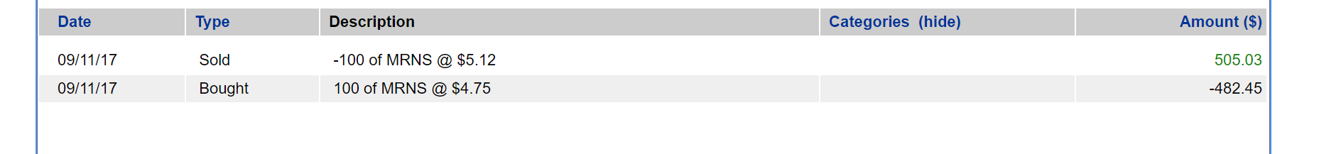 Exit comments: Missed my 50 cent mark, decided to wait for the dip and see what kind of short bounce we could get, Start having trouble around 5, but thought it reach 5.12, which it did, still a little 37 cent/share gain. Good to be on the green side again, but as this was a tiny bit speculative, I'm not complaining. Not bad for 7 minutes.
