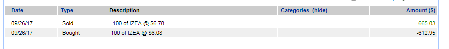 | Exit | 9/26/2017 | 6.70 |