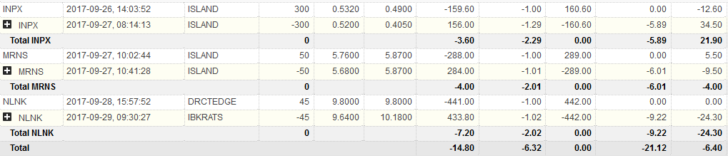 Bought in the morning when it was holding above the b/o level. Thesis was that it could run to at least 6, and I wanted to ride the uptrend, while moving the risk up. Problem w/ this trade was that the base was too far away from the breakout level, so when it broke it was already up 10+% on the day. Lesson: Look for the base to be close to the highs, so that when the stock breaks out it's just up a couple percent on the day.