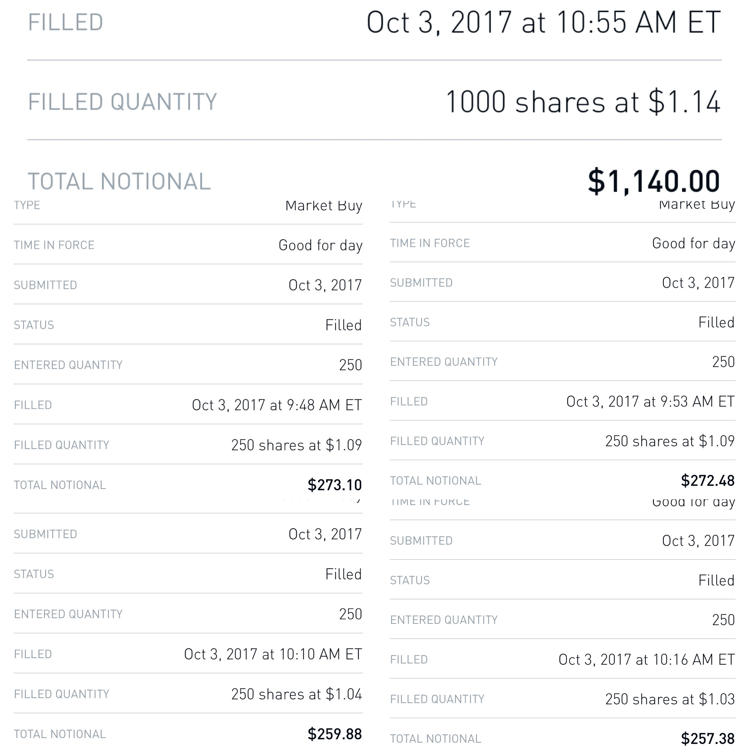 | Exit | 10/3/2017 | 1.14 |
