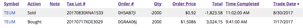 Stupid bagholder due to following someone else's trade from chat without knowing anything about the stock. Finally had to sell as I needed the money; spiked shortly thereafter and I could have taken a healthy profit. Ugh... do not want to buy and hold as a general rule. Lesson to be learned (unfortunately a few times for me).