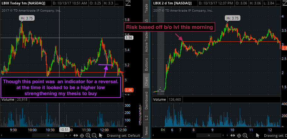 Got into this overextended stock for it appeared to be making higher lows and with it being Friday and all I though it could have the potential to run further. However, the price began to fade and eventually hit my risk level. so I took the loss and it's a good thing I did for now it's falling further as I write this.