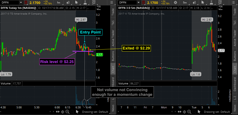 Another loss... Though it looked like a decent dip buy back up to it's opening price. what I didn't realize before entering the trade was that the volume was still not convincing enough for a momentum change. Once the price was falling toward my risk level I exited. Looking at the stock now it seemed to have found support @ $2.00 and holding so far. These scratches are bleeding me dry. (T~T )