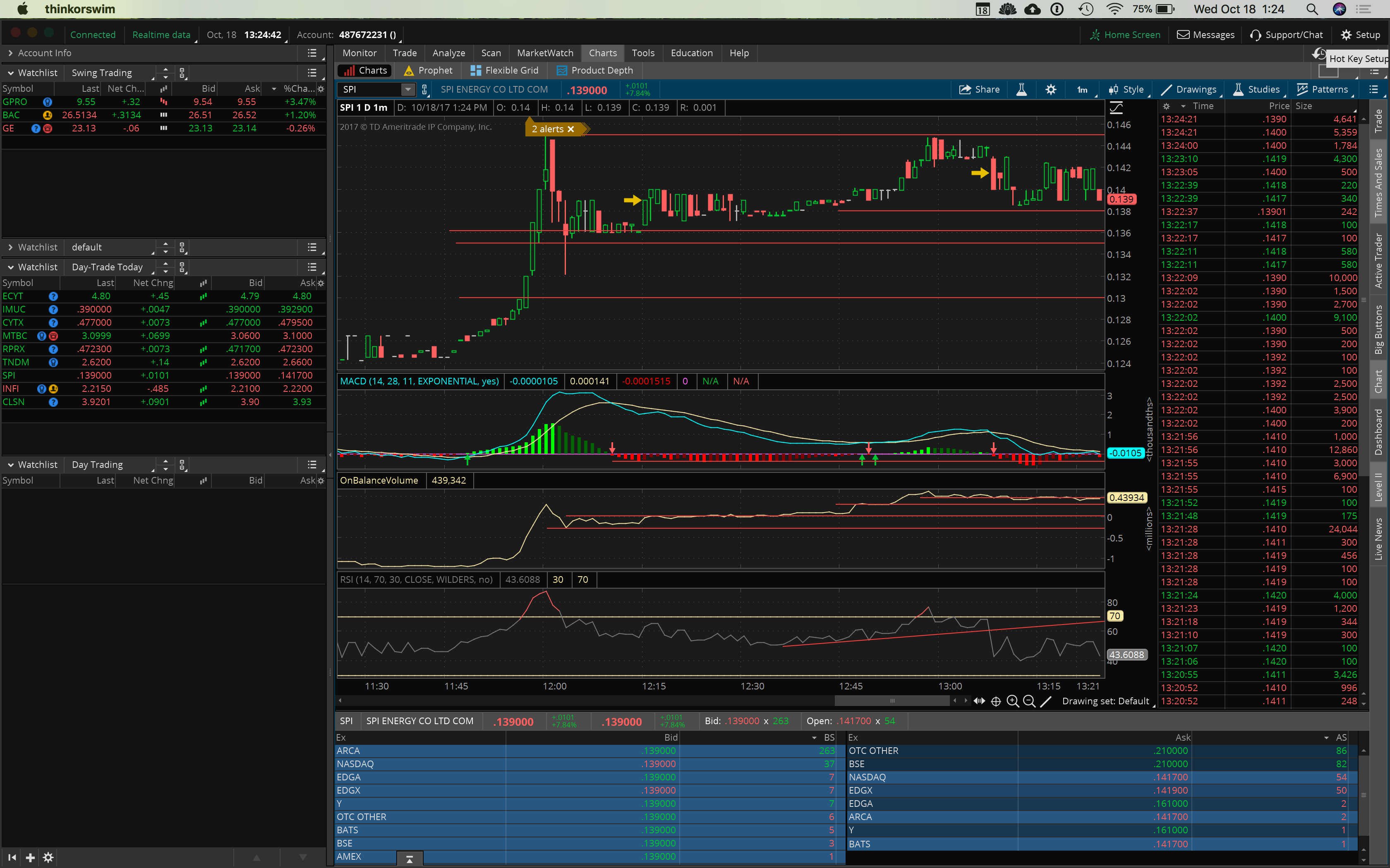 —ENTRY—I saw that it had ran up a ton and I got a notification that it broke one of my alerts and so I took a look at it and it pulled back a bit and then created a support level and then it ran up a again and I got in.—EXIT—So I got in and then it pulled back a bit and just flat lined for a while for about 45 minutes almost. Then it slowly crept up and then broke one resistance and then kept pushing and it had some serious resistance to break through. I decided to sell when it looked sour.