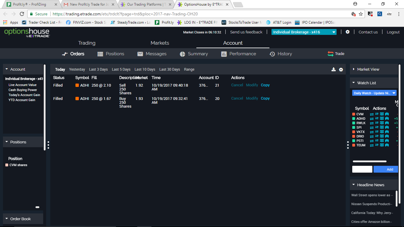 Waited for morning panic and with my humble E*Trade account jumped in 250 shares at $1.67 and in less than 5 minutes sold @ $2.10. Was watching pre-market and wanting to buy, thinking I was gonna miss out and then the 5 video lessons I watched last night popped in my head. So I quickly got my emotions in check and stuck to my plan and Viola I made a little money! Thank you Tim, you rock!! Nap time as it is 7:00 am in Alaska and I've been up since 3:00am.
