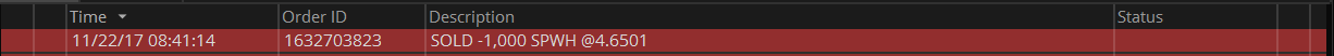 Exit comments: Really slow open, very low volume, sold when I had a chance for a tiny profit because I don't want to sit and watch this all day or worry about a dump before Thanksgiving. Volume is the name of the game, and this ticker just had none today. Too regular of a position size to just let it go and hope my sell target was hit today. $13.90 comm = $41.50 trade.