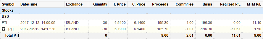 Saw an ABCD-pattern here into the afternoon. As it was above Vwap, and already had rotated the float, I was thinking squeeze into the late day. The positive was a good RR-ratio, and ability to squeeze shorts fast. It is kind of tricky to play these SSR stocks as you rather want to predict the pops. I initially wanted to buy when it passed the previous high at 3.37, but instead I chased the perk. (https://www.tradervue.com/shared/trades/6374320)