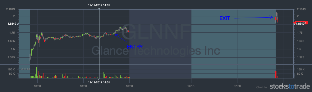 (ENTRY) I was kinda pissed that Tim alerted this one, I had this set up as my only interest to hold overnight, was just waiting for an ideal entry. Stock held its morning spike all day long and started to come up towards the end of the day, behaving very well on its first green day. (EXIT) Picked the exact top but hesitated on placing my order, ended up getting out just shy of my original order. Still learning to be swift with typing those orders in.