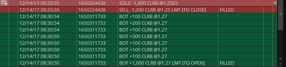 PM news about an IND being filed. Having experience with this stock, I knew not to touch it as it'd be facing a lot of selling pressure. $1.20 has been a key line for a while, so I waited to make sure it held on the open and didn't dump, then got in on the move up towards $1.30. Unfortunately, it stalled, and I got out asap after I saw a huge ask popup a few cents higher for a small loss. I thought it'd be worth a play, but didn't work out. $13.90 comm = $33.90 loss