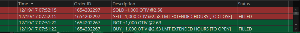 Was going for the dip buy, but I was a bit too fast again, and missed it by a minute. Once it started to drop too much, cut the loss rather than hold to protect myself. Bought on the 6th red bar, and at the time it looked like it was bottoming out and going to bounce, but it ended up dropping more so I sold into the bottoming bar 1m later. After that, the stock did bounce back towards $2.72+ so I was close yet again, but so far.