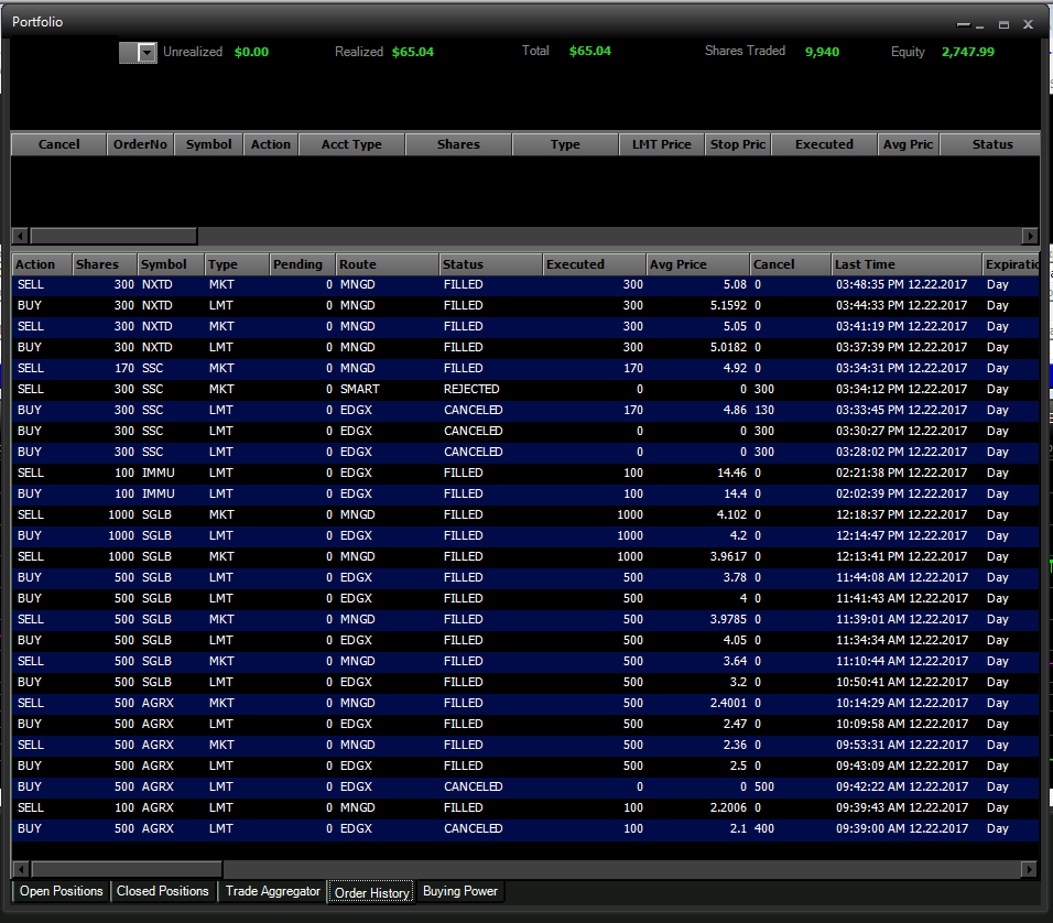 Stock was down form the 5s to the 1s after news of FDA rejection so was looking for early morning bounce. It opened at 1.94 and was immediately running. It had a bit of a pullback from 2.23 to 2.1 where I took the trade with partial fill of 100 shares. Had a bit of confused moment and accidentally sold my position at 2.2 for a tiny profit of less than $5.