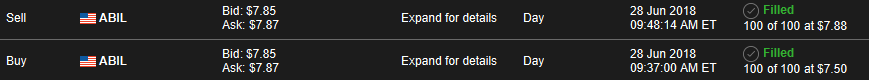 Exit comments: Saw it bounce back to at least 8.25 and then I got greedy and was "hoping" for it to go up. But after it couldn't even go back to 8.00, I had the feeling that I had to get out. It was an awesome learning experience dip buying this on a morning panic on a former runner, but this was a very choppy bounce.