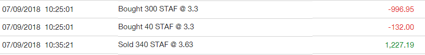 First green trade. Saw it on STT as top % gainer. Put a sell limit at 10% above purchase, it blew through it, but i did not catch it all. But it on a dip and was patient. Should not have put the limit on it, but happy that i profited. Finally was patient, bought on a dip, saw good volatility, set my target exit.
