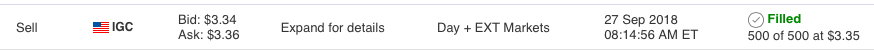 Exit comments: Sold pre-market. Too many sellers at 3.37. huge resistance at 3.39. If it Crosses 3.4 i am interested again. Thanks to the market. Thanks God for the patience. Thanks to @timothysykes.