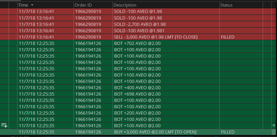 Major support buy, great idea, just didn't work out. 3rd red day down after good news, bios usually sell off after an event happens people were waiting for. Massive 350k+ bid wall at $1.98, so got in on the ask at $2.00 looking for a move back up, easy 2c risk down. Upside towards $2.05+ if it popped. Got out when the massive bid was pulled, to protect myself, and then it popped up to $2.04, so I missed it after being so patient. -$60 + -13.9 comm = -$73.90 loss