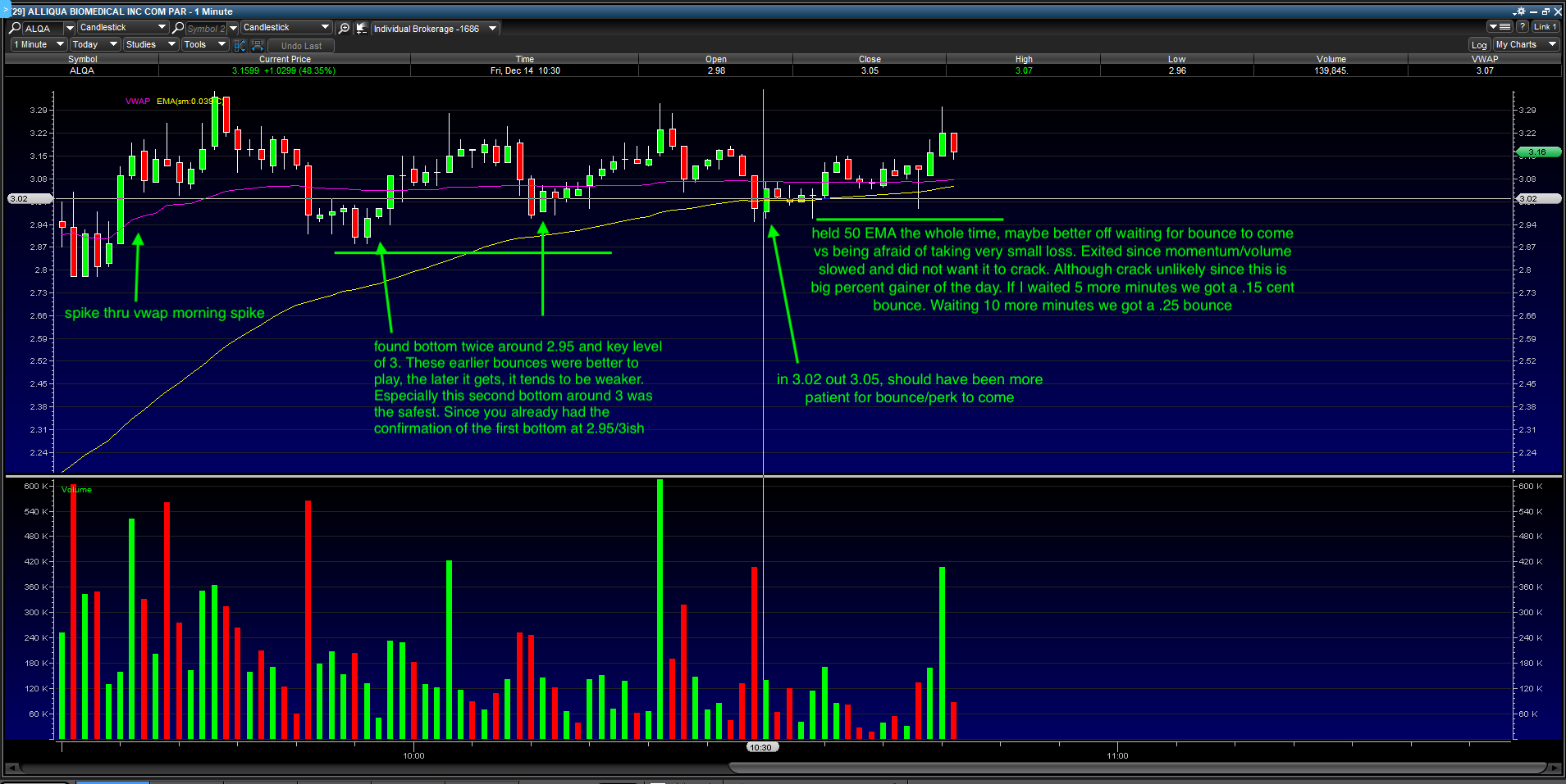 I was correct...just not patient enough! In the next 5 minutes I got the bounce I was looking for, for about 15 cents, off of vwap and 50 EMA support...if I was even more patient than that, even got a .25 cent bounce in the next 10 minutes...sometimes you are better off letting the chart play out instead of getting impatient..will grow and become more patient and comfortable