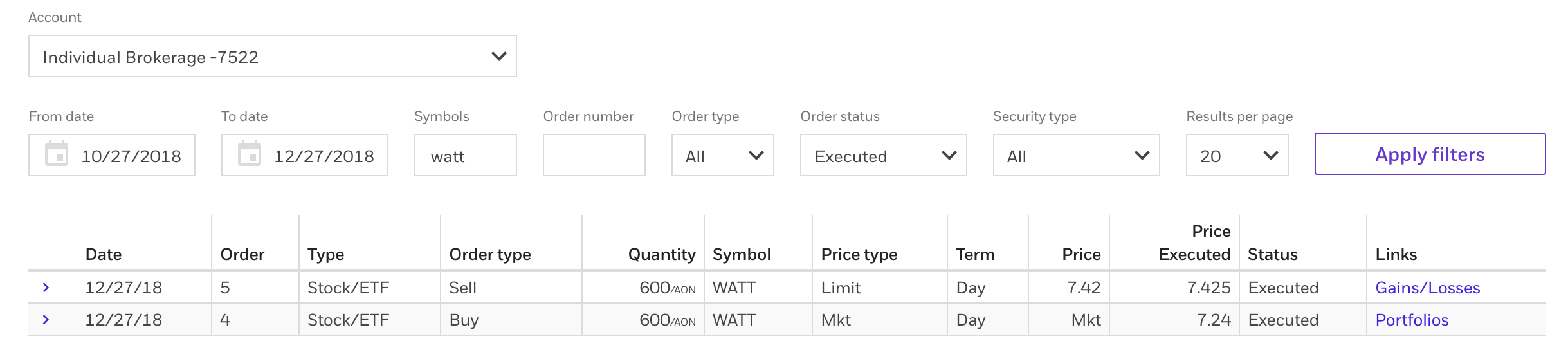 | Entry | 12/26/2018 | 7.24 |