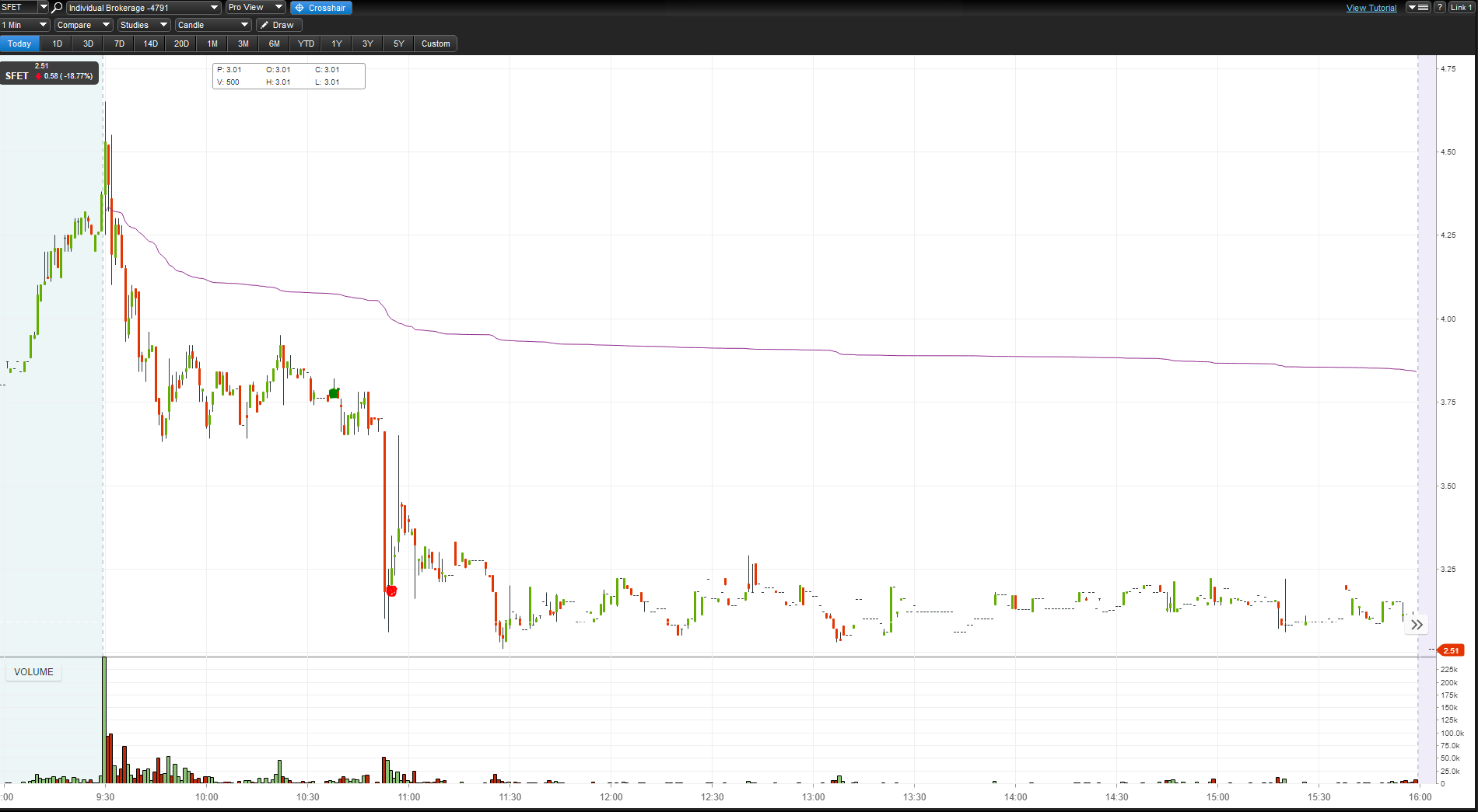 Horrible trade. Was waiting for it to zombie since it was holding support good at 3.64, so I was setting my stop loss there. My mistake was that I bought in a channel after a HUGE sell off in the morning. Buy an UP TRENDING STOCK not a CHANNEL stock. KNOW THE DIFFERENCE. Also wait for SSR to get triggered