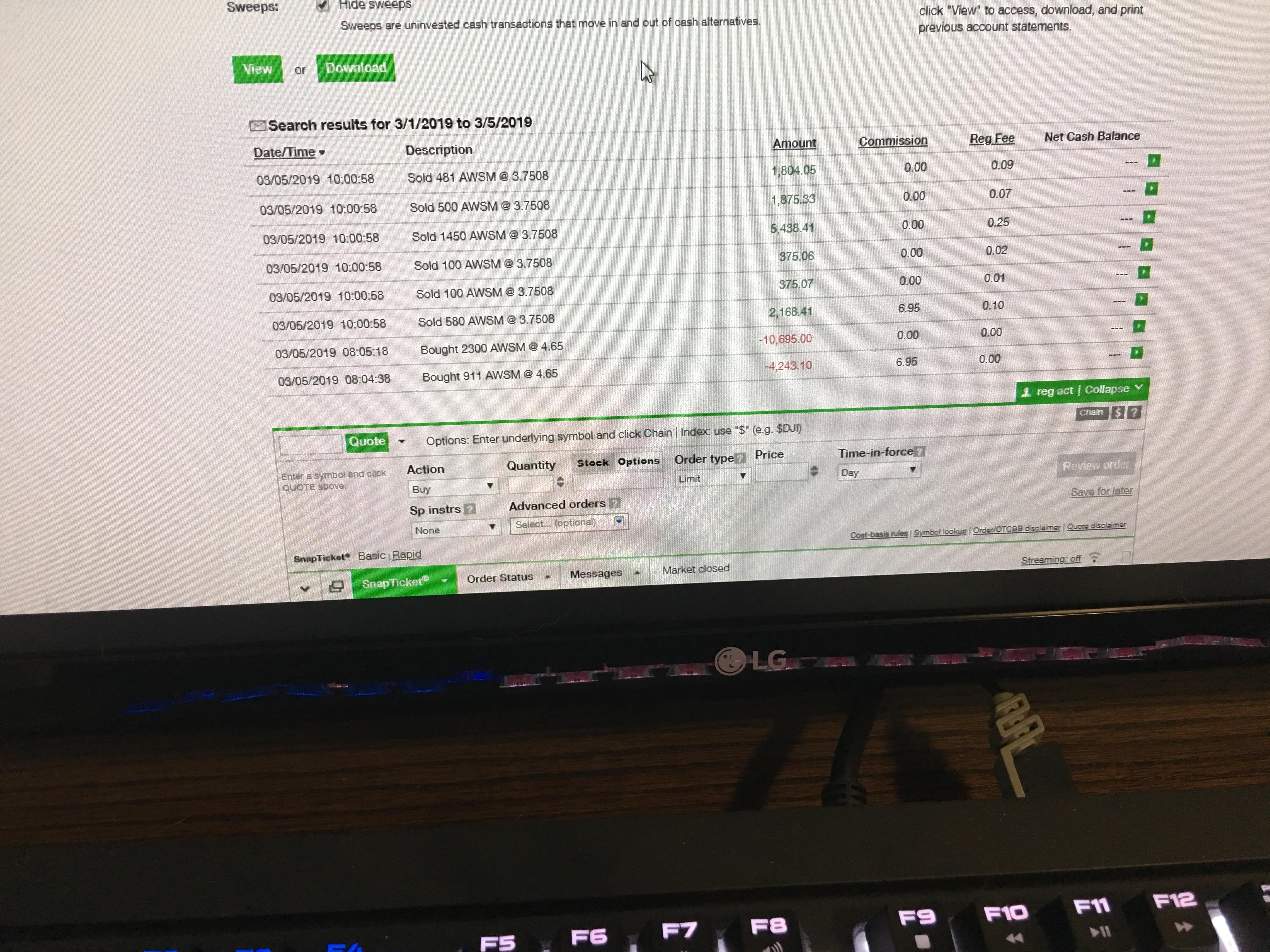 Dip bought AWSM in P/M held into open thinking I could break even ran to break even point and then dumped hard fell back under PDT by $2,070 fortunately I don't think I am under equity call due to not trading a 4th day trade last week did not stick to the rule and let it run hard on me just another learning experience